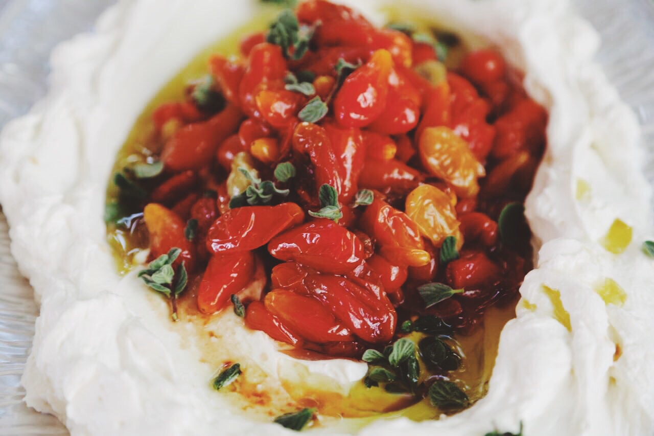 Balsamic Roasted Cherry Tomatoes on Labneh